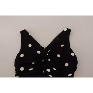 فستان دولتشي آند غابانا من الحرير الأسود المنقط بفتحة رقبة على شكل حرف V وقصّة ميدي