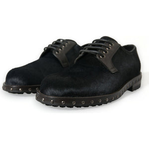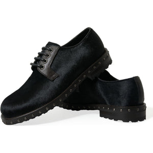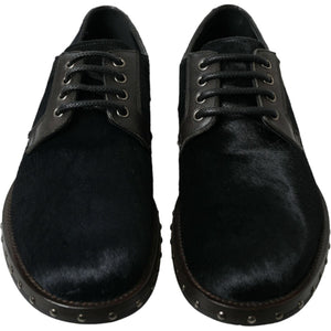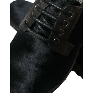 حذاء ديربي أنيق من فرو العجل باللون الأسود من دولتشي آند غابانا