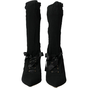 حذاء دولتشي آند غابانا أسود بكعب ستيليتو يصل إلى منتصف الساق