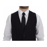 انغمس في مثال الرقي مع هذه السترة المذهلة المخططة باللون الأسود من مجموعة Dolce & Gabbana's MainLine. تم تصميم هذه السترة للحصول على صورة ظلية حادة، وهي مثالية للارتداء مع طبقات وتضيف لمسة من الأناقة الخالدة إلى أي مجموعة. إنها مصنوعة بحرفية إيطالية استثنائية، وهي قطعة استثمارية تنضح بالفخامة.