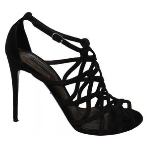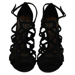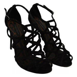 حذاء دولتشي آند غابانا من الجلد المدبوغ باللون الأسود بكعب عالٍ وحزام للكاحل