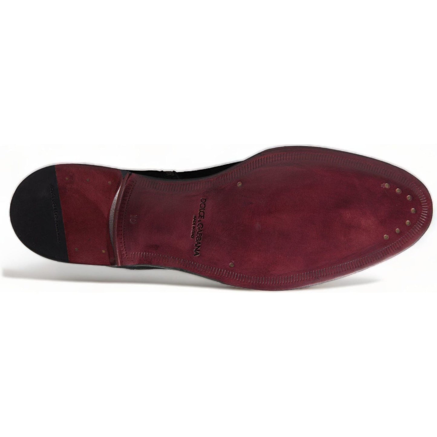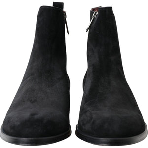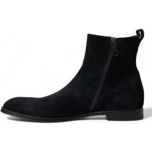 اخرج بأناقة فاخرة مع هذا الحذاء المخملي الأسود الرائع لمنتصف الساق من Dolce & Gabbana. صُنعت هذه الأحذية الرائعة من أجود أنواع الجلد السويدي بنسبة 100%، وهي تجسد الحرفية العالية المصنوعة لرفع مستوى خزانة ملابس أي رجل نبيل. مثالي للمجموعات المتطورة، فهو يتميز بسحاب إغلاق أنيق وتفاصيل شعار العلامة التجارية المميزة، كل ذلك مع ضمان الراحة مع نعل جلدي. هذه الأحذية المصنوعة يدويًا في إيطاليا ليست مجرد أحذية، ولكنها تمثل لمسة عصرية.