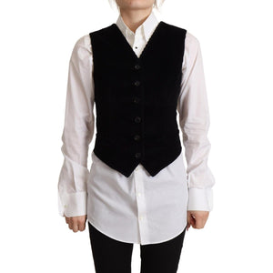 انغمس في مثال الرقي الإيطالي مع هذه السترة الرائعة بدون أكمام من دولتشي آند غابانا. يتميز تصميم الرقبة على شكل حرف V بزر إغلاق أنيق، مما يضفي سحرًا كلاسيكيًا ومعاصرًا على خزانة ملابسك. مثالية للارتداء مع طبقات أو كقطعة مستقلة، هذه السترة السوداء هي إضافة متعددة الاستخدامات إلى مجموعة أناقتك، مصنوعة من مزيج مريح يبرز صورة الجسم الظلية.