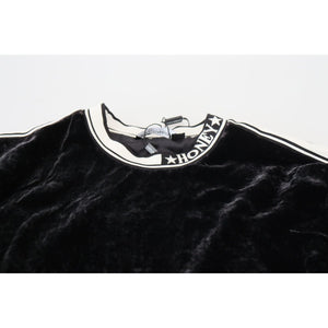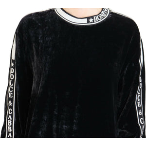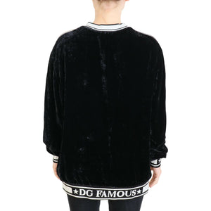 تمتعي بالرقي والأناقة مع هذه السترة الجديدة الرائعة من دولتشي آند غابانا . صُنعت هذه السترة ذات الرقبة الدائرية من مزيج من الحرير والفسكوز، ولا تتعلق بالدفء فحسب، بل أيضًا بإضفاء مظهر جريء على الموضة. أكمامها الطويلة وملمسها المخملي الفاخر، مع اللون الأسود الكلاسيكي الذي يتميز بتفاصيل بيضاء، تضمن تعدد الاستخدامات مع إضافة لمسة من الأناقة إلى خزانة ملابسك. تُظهر تفاصيل الشعار الأصالة، ومع أصله الإيطالي، لا يمكنك أن تتوقع أقل من الحرفية الرائعة.