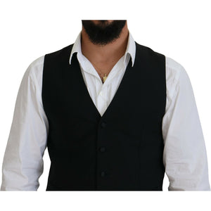 تمتع بالرقي مع هذه السترة الرسمية المذهلة من دولتشي آند غابانا . مثالية للمناسبات الراقية، هذه السترة ذات الصدر الواحد تشع بالأناقة والحرفية الفائقة. تضمن تركيبة الصوف البكر النقي، المصممة بخبرة، شعورًا فاخرًا، بينما يوفر اللون الأسود الأنيق تنوعًا لا نهاية له. مبطن بالحرير الفاخر، ويعدك بتوفير الراحة والأناقة. تم تصنيعه بشكل أصلي في إيطاليا، ويعرض تفاصيل الشعار الأيقوني كعلامة على جودة التصميم الحقيقية.