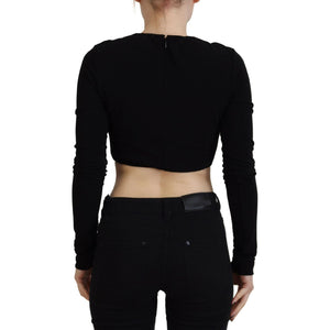 بلوزة قصيرة من Dsquared² مصنوعة من الفيسكوز باللون الأسود بأكمام طويلة ورقبة دائرية