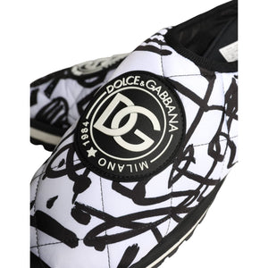 Dolce & Gabbana Black White Quilted Logo Sandals Slides Shoes