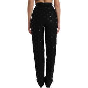بنطلون دولتشي آند غابانا الأنيق المستقيم ذو الخصر العالي مع طباعة الشعار