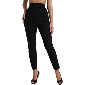 اكتشفي مثال الحرفية الإيطالية مع هذا البنطال الرائع ذو الخصر العالي باللون الأسود من Dolce & Gabbana. مصممة بشكل مثالي لإبراز صورتك الظلية، فهي توفر أناقة وراحة لا مثيل لها لأي خزانة ملابس متطورة. هذا البنطلون مصنوع من أجود أنواع الصوف البكر، وهو قطعة أساسية متعددة الاستخدامات تنتقل بسلاسة من الأناقة المكتبية إلى الأناقة المسائية.