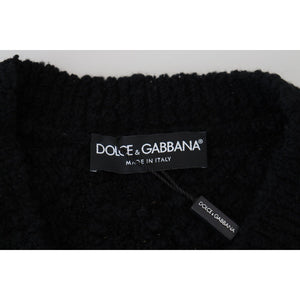 انغمس في مثال الفخامة مع هذه السترة السوداء المريحة ذات الرقبة على شكل حرف V من Dolce & Gabbana الأصلية 100%. تضمن خامته الرائعة المصنوعة من مزيج الصوف الراحة والأناقة، مما يخلق مظهرًا راقيًا مع لمسة من السحر الكاجوال. مثالية لعشاق الموضة الرائدين في إيطاليا.