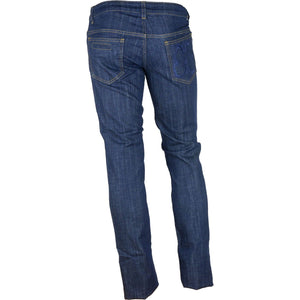 قم بترقية خزانة ملابسك مع الطراز الأنيق من قماش الدنيم Cavalli Class. مصنوع من القطن الخالص، هذا الجينز يوفر مقاسًا عاديًا مريحًا، مثاليًا للارتداء اليومي أو النزهات غير الرسمية المتطورة. اللون الأزرق الداكن ينضح بالرقي، بينما تضيف الرقعة المطرزة على الجيب الخلفي لمسة من فخامة التصميم.