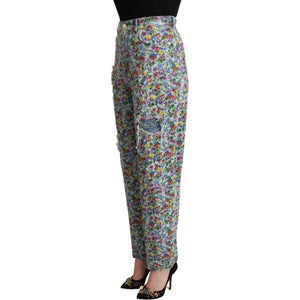 استثمري بأسلوب خالد مع بنطال الجينز المذهل ذو الخصر العالي من Dolce & Gabbana، والمزين بطبعات زهور جذابة تغطيه بالكامل. مثالي لرفع مستوى أي مجموعة غير رسمية، هذا الجينز يمزج بين الأناقة الكلاسيكية والرقي الحديث.