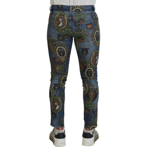 انغمس في مثال الفخامة الإيطالية مع بنطال الجينز الضيق الرائع من Dolce & Gabbana. مثالي لإضافة لمسة إلى أي خزانة ملابس، يتميز هذا الجينز بتصميم فريد من نوعه باللون الأزرق مع طباعة ميدالية لافتة للنظر. مصنوع من مزيج ناعم من 98% قطن و2% إيلاستين، هذا الجينز يوفر راحة فائقة ومتانة. تم تشطيبه بخبرة مع سحاب إغلاق أنيق وتفاصيل الشعار المميزة، مما يعكس التزام العلامة التجارية بالتميز. صُنع هذا الجينز بفخر في إيطاليا، وهو شهادة على الحرفية والأناقة الفائقة.