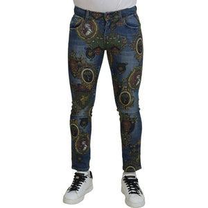 بنطلون جينز ضيق مطبوع أنيق من دولتشي آند غابانا