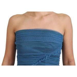 فستان ميدي ضيق بدون أكمام من التول باللون الأزرق من دولتشي آند غابانا، جديد تمامًا مع العلامات التجارية الأصلية بنسبة 100%.