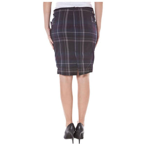تنورة قصيرة، زر وسحاب خلفي، بطانة، شعار
