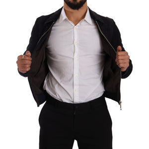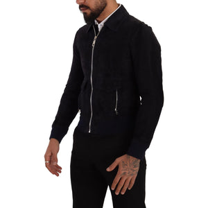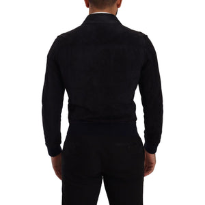 جاكيت قصير أنيق من الجلد السويدي باللون الأزرق من دولتشي آند غابانا