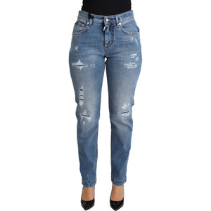تمتع بالأسلوب الإيطالي الأنيق مع هذا الجينز الضيق عالي الخصر من Dolce & Gabbana. هذا الجينز ممزق بشكل مثالي لإضفاء لمسة من الأناقة، وهو قطعة لا غنى عنها لمجموعتك الفاخرة. مع تصميم جذاب ومصنوع باستخدام مزيج قطني عالي الجودة، فهو يوفر الراحة والمتانة. يكتمل هذا الجينز بتفاصيل الشعار الأيقوني، وهو قطعة خالدة ستلفت الأنظار بالتأكيد.