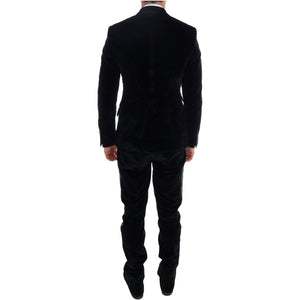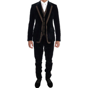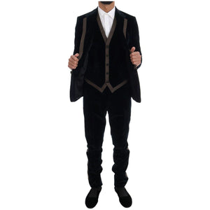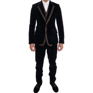 بدلة دولتشي آند غابانا الأنيقة ذات التصميم الضيق والمكونة من ثلاث قطع باللون الأزرق
