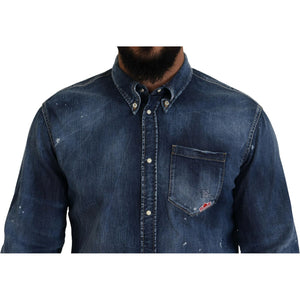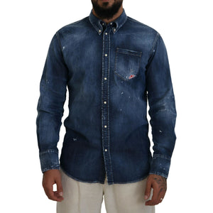 قميص رجالي كاجوال بأكمام طويلة وياقة مغسولة باللون الأزرق من Dsquared²