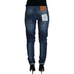 بنطلون جينز أنيق أزرق اللون بخصر منخفض