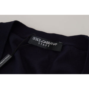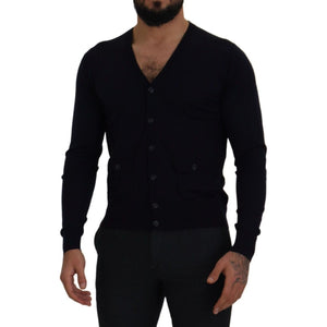 سترة كارديجان أنيقة من الصوف البكر باللون الأزرق من دولتشي آند غابانا