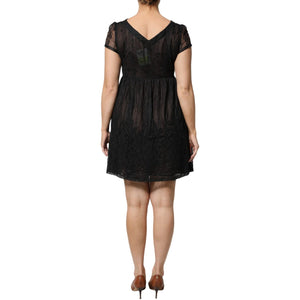 Blugirl Black Short Sleeves Floral Lace Trim A-line Mini Dress