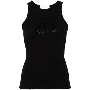 black stretch-cotton ribbed knit rhinestone embellishment embossed logo to the front crew neck sleeveless straight hem Logo ribbed cotton tank top Size and Fit - This piece fits true to size. We recommend you get your regular size. Model is 1,75m / 5ft 8in wearing size S