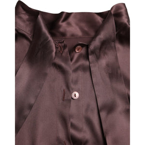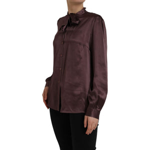 بلوزة دولتشي آند غابانا ذات الياقة أسكوت ذات الأكمام الطويلة باللون البني
