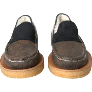 حذاء لوفرز رجالي من الجلد والفراء أصلي 100% من دولتشي آند غابانا، جديد تمامًا مع العلامات التجارية.