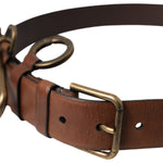 حزام دولتشي آند غابانا من جلد العجل البني بمشبك معدني ذهبي للرجال