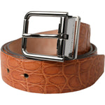 حزام دولتشي آند غابانا المصنوع من الجلد البني مع مشبك معدني فضي