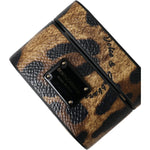 حافظة سماعات Airpods من Dolce & Gabbana مصنوعة من جلد العجل باللون البني مع لوحة معدنية بشعار