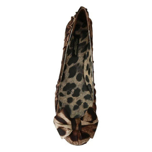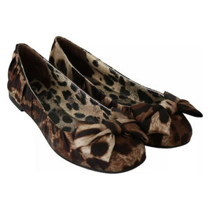 حذاء باليرينا من الحرير بنقشة جلد النمر باللون البني من دولتشي آند غابانا