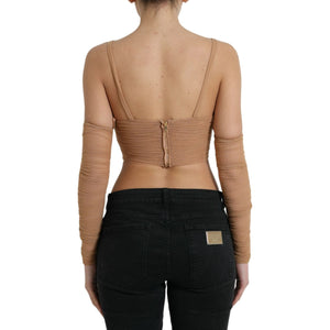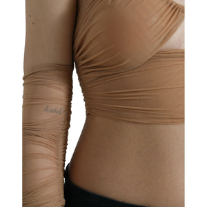 بلوزة دولتشي آند غابانا الأنيقة ذات الأكمام الطويلة باللون البني