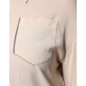 Brunello Cucinelli Beige Silk Blend Collared Button Down Top
