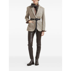 Brunello Cucinelli Sparkling cotton and viscose English rib knit blazer with monili