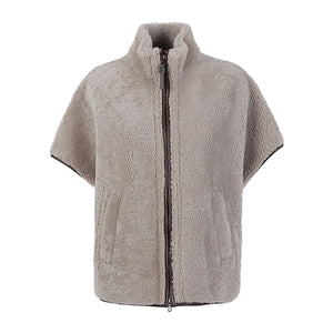 Brunello Cucinelli Curly Shearling Short Sleeve Outerwear with Shiny Zipper Pull