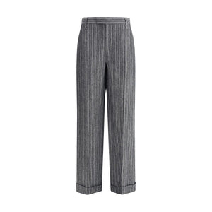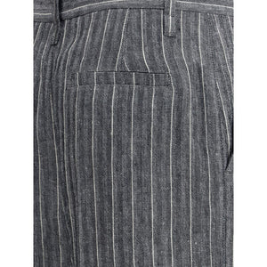 Brunello Cucinelli’s linen palazzo Pants offer a loose, flowing fit perfect for an elegant, relaxed look. The front closure features a zipper, hook-and-eye and button closure, ensuring a secure fit. The two side slash pockets and two welt pockets on the back add functionality without compromising style. The striped pattern lends a sophisticated touch, while the turn-up hem completes the design, making these pants ideal for a refined and comfortable look, perfect for a variety of occasions.
