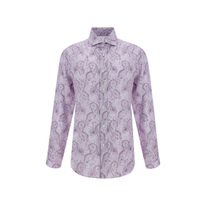 Brunello Cucinelli’s linen shirt is an elegant, lightweight garment perfect for the warmer season. The classic collar adds a touch of sophistication, while the front button closure ensures a clean, sophisticated look. Adjustable button cuffs offer a customizable fit, ensuring comfort and practicality. The elegant and intricate paisley design enhances the shirt with a distinctive pattern that catches the eye without being overdone.
