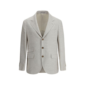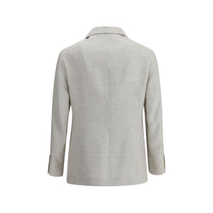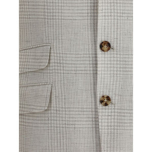 Brunello Cucinelli’s Check Blazer is an elegant and refined garment, perfect for those seeking a sophisticated yet versatile style. The single-breasted front button closure and classic lapels give the blazer a timeless design, suitable for both formal occasions and more casual-chic looks. The three front welt flap pockets add functionality and a touch of class, while the two slits at the back ensure comfort and freedom of movement. The check pattern gives an eye-catching visual texture, enriching the garment with a distinctive detail.