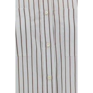 Brunello Cucinelli’s Cotton Shirt features a classic collar and front button closure for a stylish and versatile look. Adjustable button cuffs allow for a customized fit. Two patch pockets on the front add functionality and a touch of style. The understated striped pattern enhances the design, while the regular fit ensures comfort and a flawless look. Perfect for a casual-chic look or a more formal occasion.