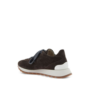 dark brown padded collar contrasting laces rubber sole embossed logo detail Suede leather sneakers Size and Fit - Heel 3 cm