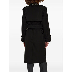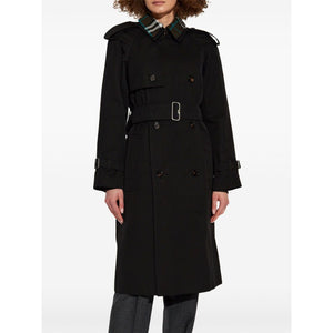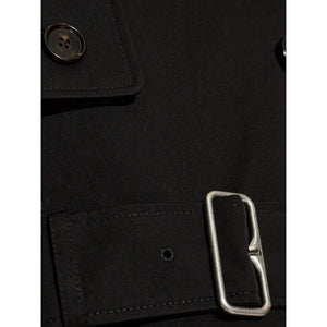 black cotton wide notch lapels detachable collar double-breasted button fastening epaulettes long sleeves buttoned cuffs belted waist two side welt pockets central rear vent straight hem Vintage Check-pattern lining We've partnered with Good On You — an independent agency that rates how brands perform in relation to their impact on the planet, people and animals, with a multi-criteria rating simplified to a five points scale. In order to be awarded our conscious label, larger brands need to score a minimum of four out of five ('Good'), while smaller brands must score at least three out of five ('It's A Start'). This item comes from a brand rated three out of five ('It's A Start') by Good on You at the time it was added on FARFETCH. Please note, this is a brand-level rating and does not guarantee that this product is made with conscious materials. Learn more about what makes a product Conscious on our Conscious Criteria page Cotton trench coat Size and Fit - This piece fits true to size. We recommend you get your regular size. Model is 1,75m / 5ft 8in wearing size 8 (UK)