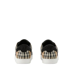 archive beige/black calf leather calf suede sheepskin Vintage Check pattern round toe front lace-up fastening flat rubber sole Leather sneakers Size and Fit - Heel 1 in / 2,5 cm; Platform 1 in / 2,5 cm