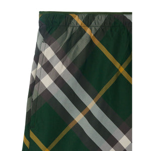ivy green/multicolour twill weave check pattern above-knee length two side slash pockets elasticated waistband with internal drawstring mesh lining Be mindful to try on swimwear over your own garments. Check motif swim shorts Size and Fit - This piece fits true to size. We recommend you get your regular size. Model is 1,84m / 6ft 1in wearing size M