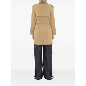beige cotton double-breasted button fastening belted waist detachable collar wide notch lapels epaulettes long sleeves belted cuffs two side welt pockets American rear vent straight hem Vintage Check-pattern lining Cotton trench coat Size and Fit - This piece fits true to size. We recommend you get your regular size. Model is 1,75m / 5ft 8in wearing size 8 (UK)