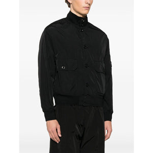 black front button and zip fastening two front flap pockets sleeve zip pocket signature Lens detail Chrome-R nylon jacket Size and Fit - This piece fits true to size. We recommend you get your regular size. Model is 1,84m / 6ft 1in wearing size M