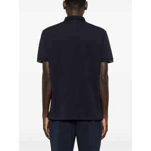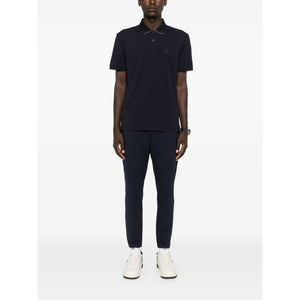 قميص بولو من مزيج القطن الأزرق الداكن بتصميم مطاطي مع ياقة قصيرة وأكمام قصيرة وطباعة شعار على الصدر وفتحات جانبية قصيرة وحاشية مستقيمة وإغلاق بزر في الأمام قصير المقاس والملاءمة - هذه القطعة تناسب المقاس الحقيقي. نوصيك بالحصول على مقاسك المعتاد. يبلغ طول الموديل 1.84 متر / 6 أقدام و1 بوصة وترتدي المقاس M