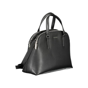 bag 2 handles, double adjustable and removable shoulder strap, 3 compartments, 1 inside pocket, zip and snap closure, logo, 100% polyester recycled